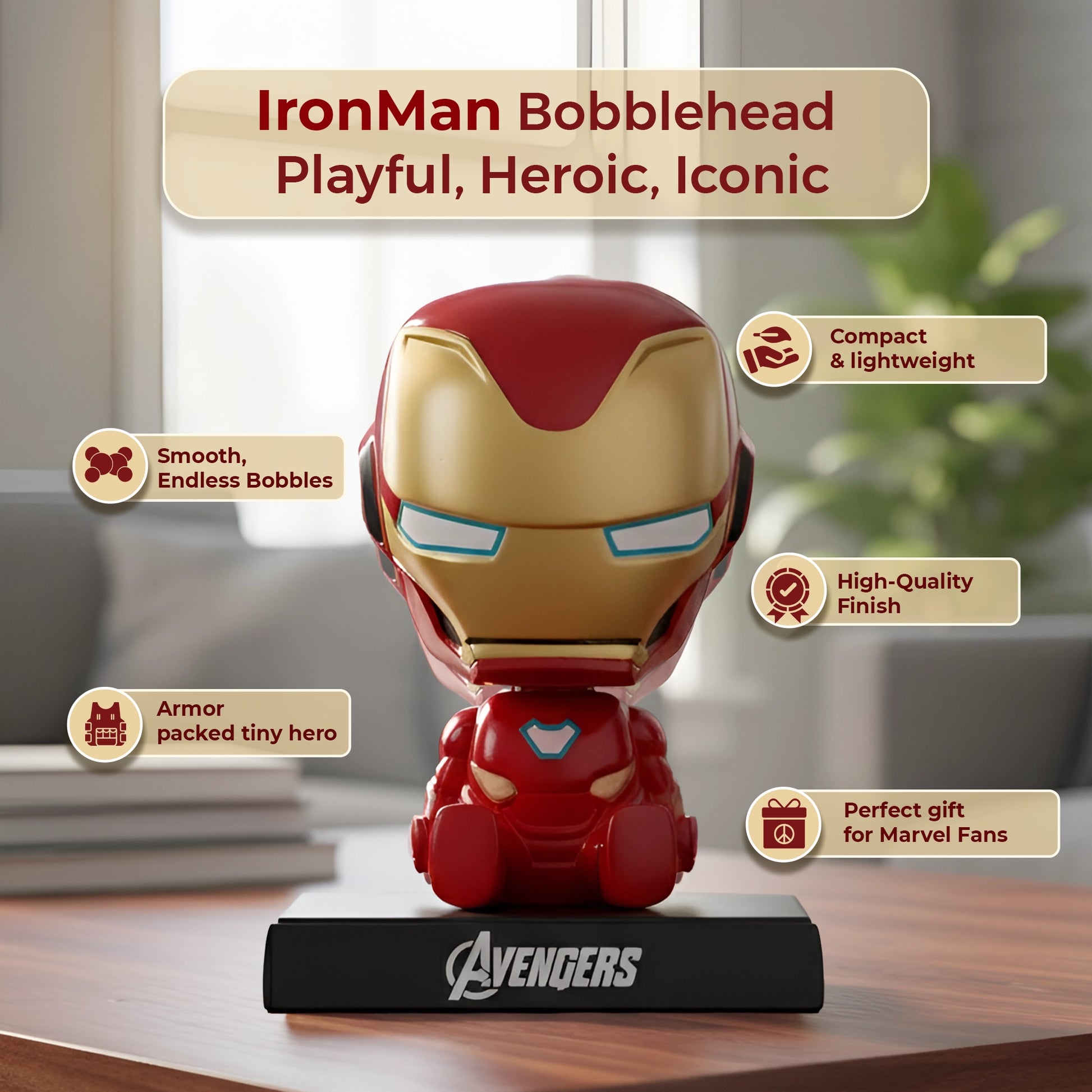 Tiny but mighty, this Iron Man bobble head packs superhero energy into every nod. From smooth head bobbles to striking armor details, every element screams superhero swagger. A tiny hero with an unstoppable attitude, this bobblehead adds playful energy, iconic charm, and Stark-level cool to desks, shelves, or car dashboards. Compact yet sturdy, it doubles as a fun stress-buster and a must-have collectible for kids, Marvel fans, and mini superhero enthusiasts.