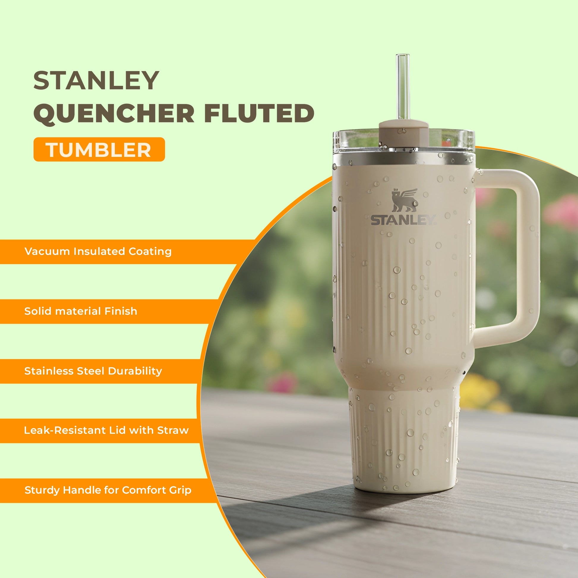 Stay refreshed in style with the Stanley Fluted Tumbler, your everyday hydration companion offering a perfect blend of elegance, comfort, and everyday convenience. Its distinctive fluted finish adds a modern touch, while the stainless steel build and advanced vacuum insulation ensure excellent temperature retention. The sturdy handle offers a secure, comfortable grip, and the leak-proof lid with straw makes it ideal for travel, school, or office. With a 1.18-litre capacity, it keeps you hydrated longer without constant refills. It pairs functionality with effortless style, perfect for hot coffee, chilled tea, or daily water goals.