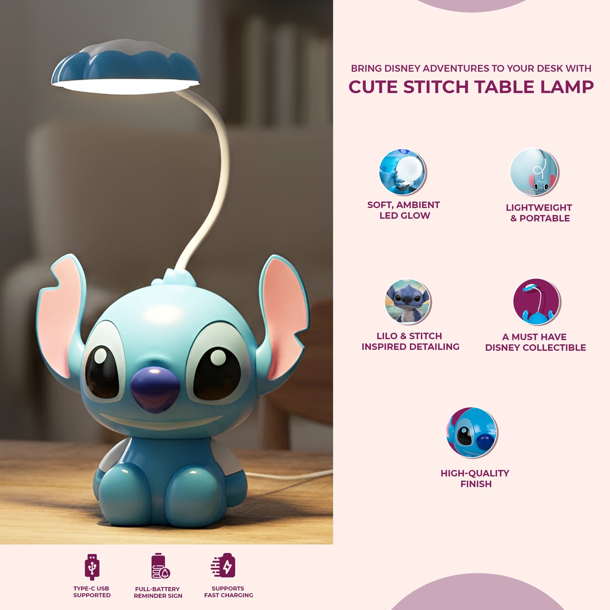 Featuring the Lilo & Stitch playful vibes, this Stitch table night lamp brings the disney magic to your desk or bedside decor. The LED light illuminates the space, creating a cozy ambience. Compact and lightweight, it’s easy to place anywhere, while the USB support keeps the glow always intact. A must-have collectible for all the Disney fans alike or a perfect gift for anyone who loves cartoons and fun utility decor.